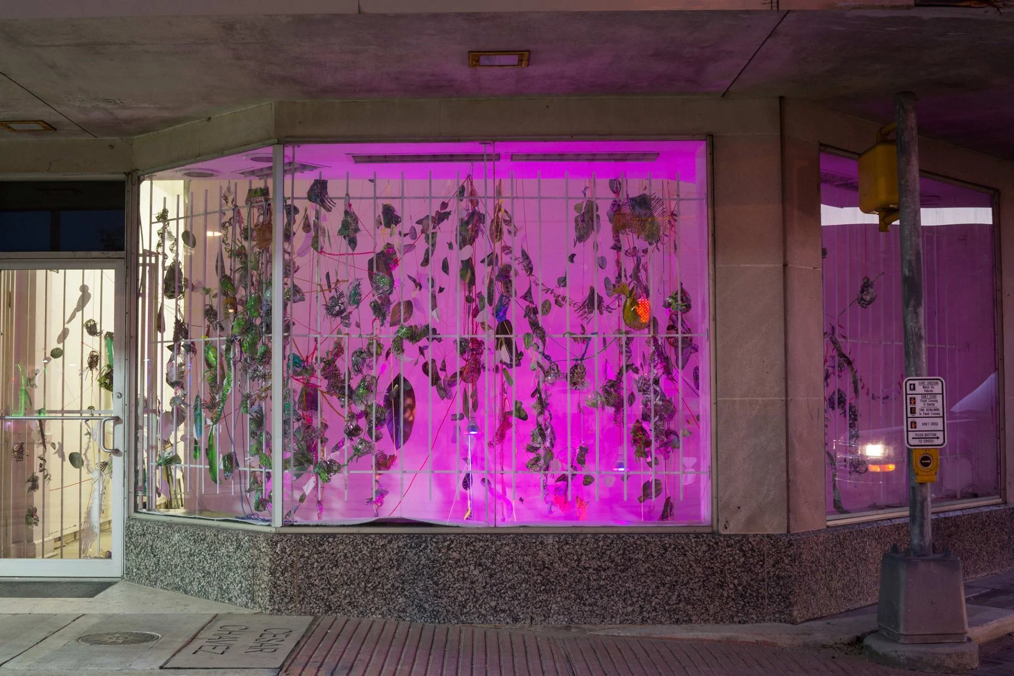In the third floor stairwell, an installation commissioned from Aimeé Beaubien weaves photos from three different collections into soft, basket-like objects, suspended by neon string, cascading into a group of ceramic whiskey jugs made by the artist’s husband—whose jug collection exceeds the space of their home, Grant said. The installation’s activity mirrors the main gallery’s overwhelming display, exploring the impulse to collect on both a personal and institutional scale.
